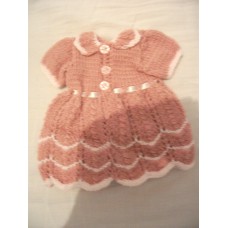 Dolls dress in pink and white for 12 inch dollHand knitted in double knitacrylic yarn and is hand or..